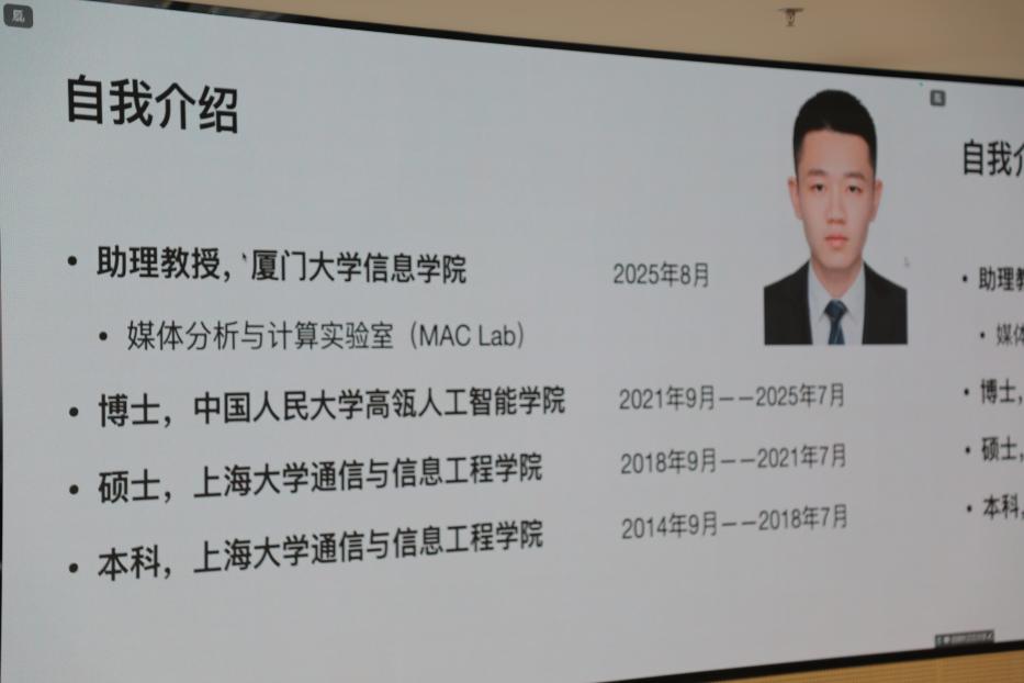 为进一步帮助2025级研究生新生快速适应研究生阶段的学习与生活,科学规划学业和职业发展,a片动画 于9月7日上午在立德楼1826组织开展“瓴航”经验分享会。分享会邀请学院2025届硕士毕业生、现就职于字节跳动Seed的张配天,以及2025届博士毕业生、现任教于厦门大学信息学院的胡啸林作为分享嘉宾,围绕研究生学业规划和求职发展两大主题与同学们进行深入交流。分享会由学院2024级博士生陈曦主持,2025级全体研究生新生参加此次活动。